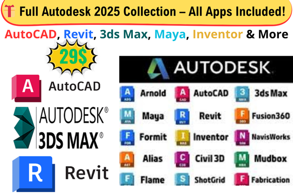 Unlock your creative and technical potential with the Autodesk 2025 All-In-One Bundle, including AutoCAD, Revit, 3ds Max, Maya, Inventor, and more — all for just $29.